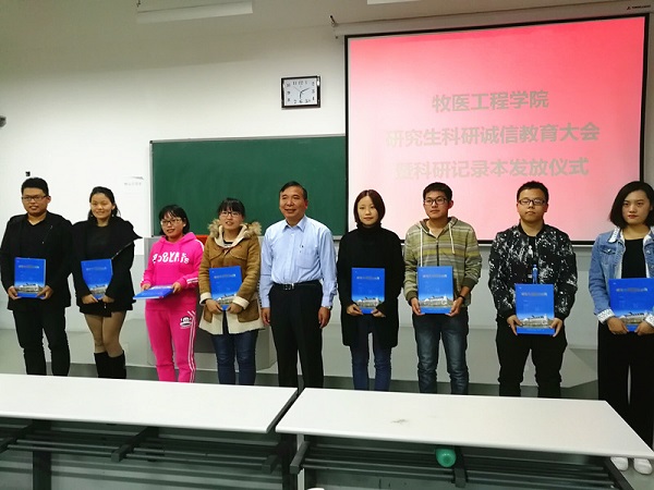 10月17日下午,麻豆做爱 在龙子湖校区繁塔楼C3O2室召开研究生科研诚信教育大会暨科研记录本发放仪式。李明副院长出席会议。2017级全体硕博研究生参加了会议。