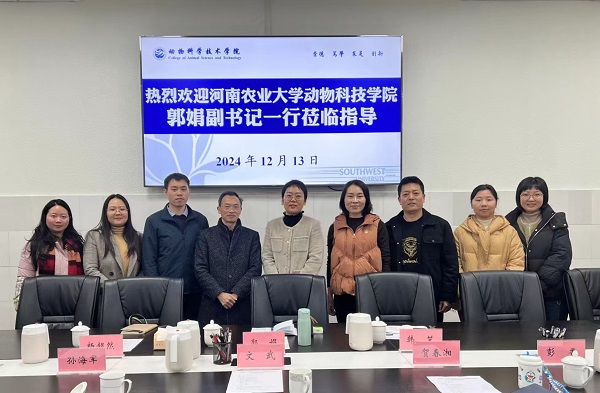 党委副书记郭娟、动物遗传育种与繁殖科学系教授孙桂荣,正科级组织员兼团委书记韩笑、辅导员杨超然一行分别前往四川农业大学动麻豆做爱