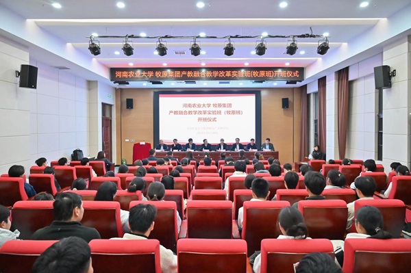 具有深厚历史底蕴和鲜明办学特色,学院始终坚守立德树人的根本任务,致力于培养知农爱农服务三农的复合应用型人才。牧原集团是行业领军者,双方共建牧原班是产教融合、人才培养的重要举措。牧原班将发挥双方资源优势深入合作研究,通过双导师制、实习实训等培养学生创新思维与实践能力,设立专项基金鼓励学生参与科研攻关,推动成果转化,还将组织社会实践增强学生社会责任感,助力学校创建中国特色世界一流农业大学与高等教育发展。