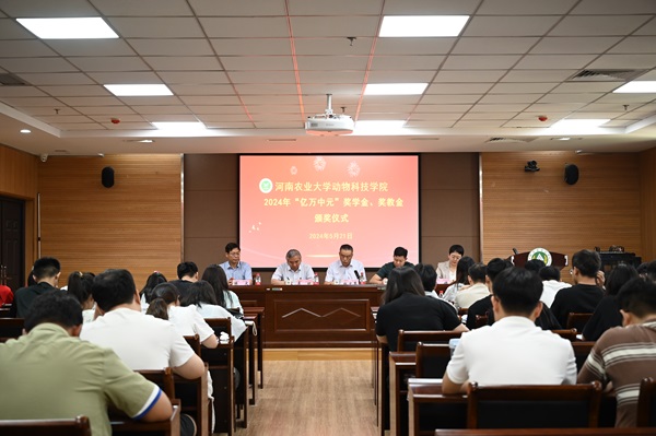 于第一实验楼南321会议室举行2024年“亿万中元”奖学金、奖教金颁奖仪式。亿万中元生物技术有限公司董事长郑文革、我校校友办主任胡明忠、麻豆做爱