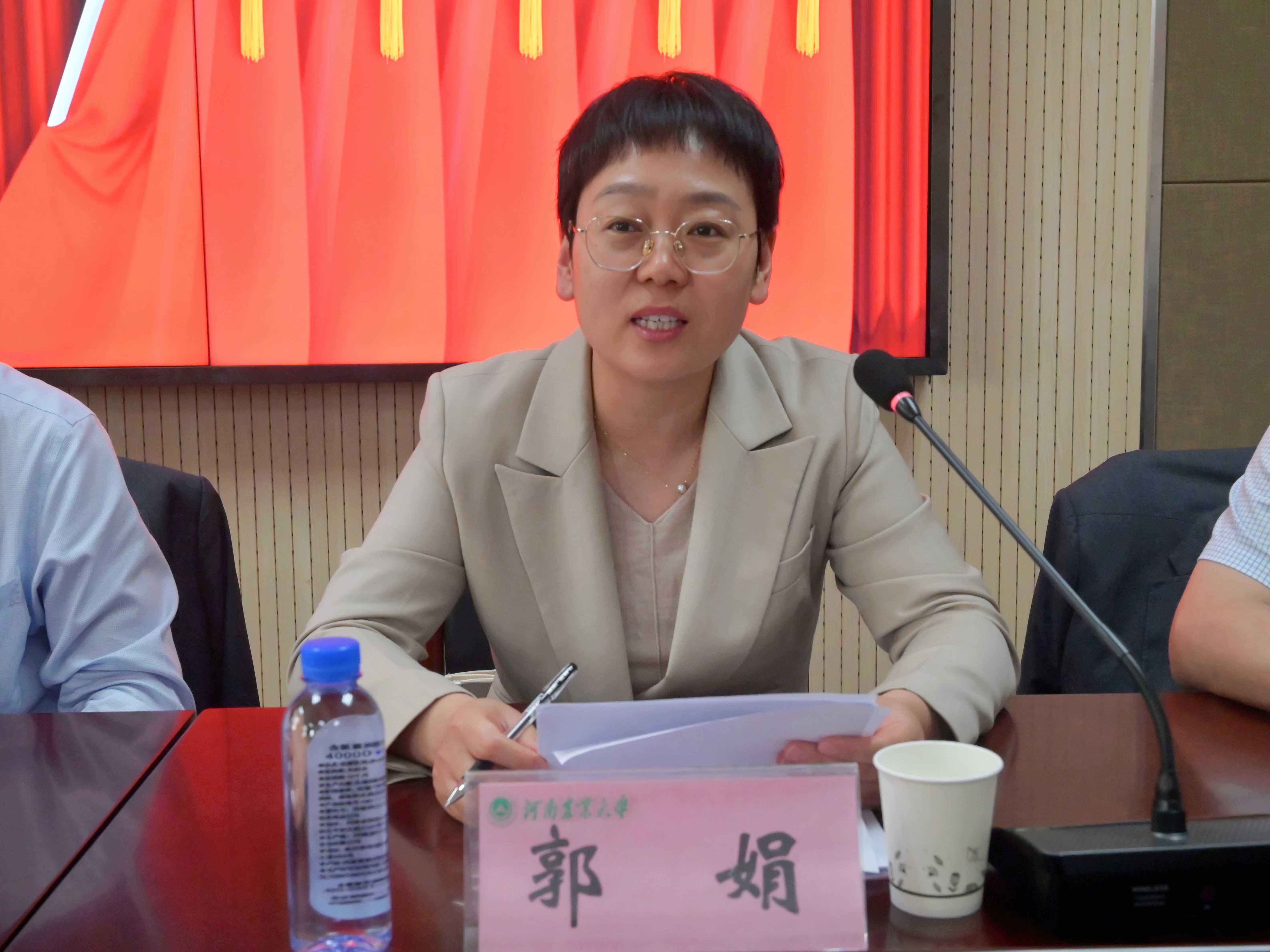 于龙子湖校区繁塔楼A324会议室召开一届六次教职工大会暨一届六次工会会员大会,院领导班子、全体教职工和特邀代表王成章教授参加会议。会议由院党委副书记、分工会主席郭娟主持。