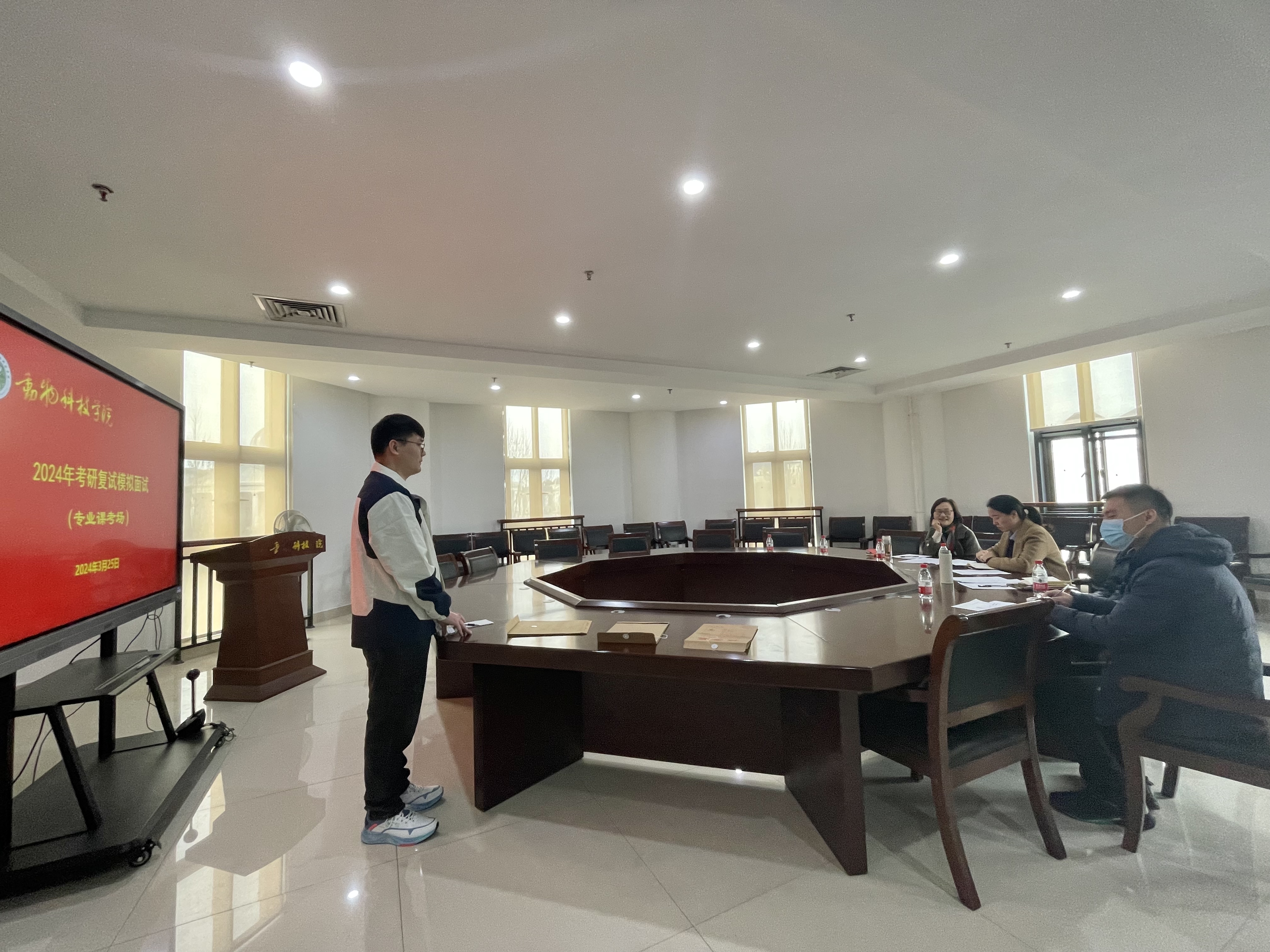 于龙子湖校区第一实验楼会议室301、402、502举行考研复试模拟面试。院党委副书记郭娟带领经验丰富的硕士生导师、专业任课教师、班主任、辅导员等十余名教师组成面试指导组参与此次模拟面试指导。