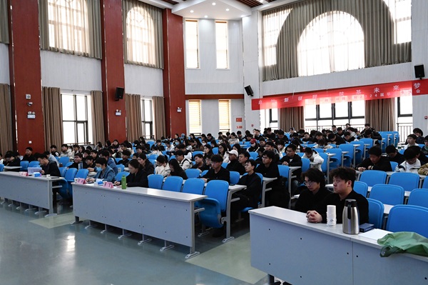 于龙子湖校区繁塔楼大教室四举办以“启航新征程,筑基未来梦”为主题的2024届毕业生就业创业大会,牧原产业联合研究院院长兼学院副院长付彤、院党委副书记郭娟、副院长孙宇、毕业生辅导员韩笑出席会议,2024届全体毕业生参加会议。