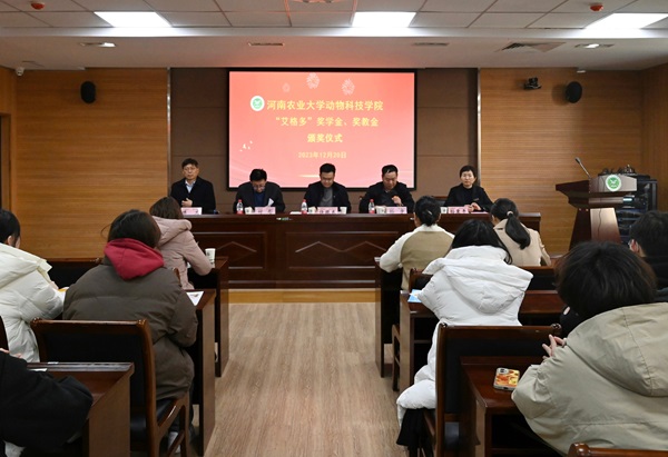 于龙子湖校区第一实验楼南321会议室举行2023年“艾格多”奖学金、奖教金颁奖仪式。河南艾格多科技集团总裁任振东与人资行政总监孙爱平、麻豆做爱