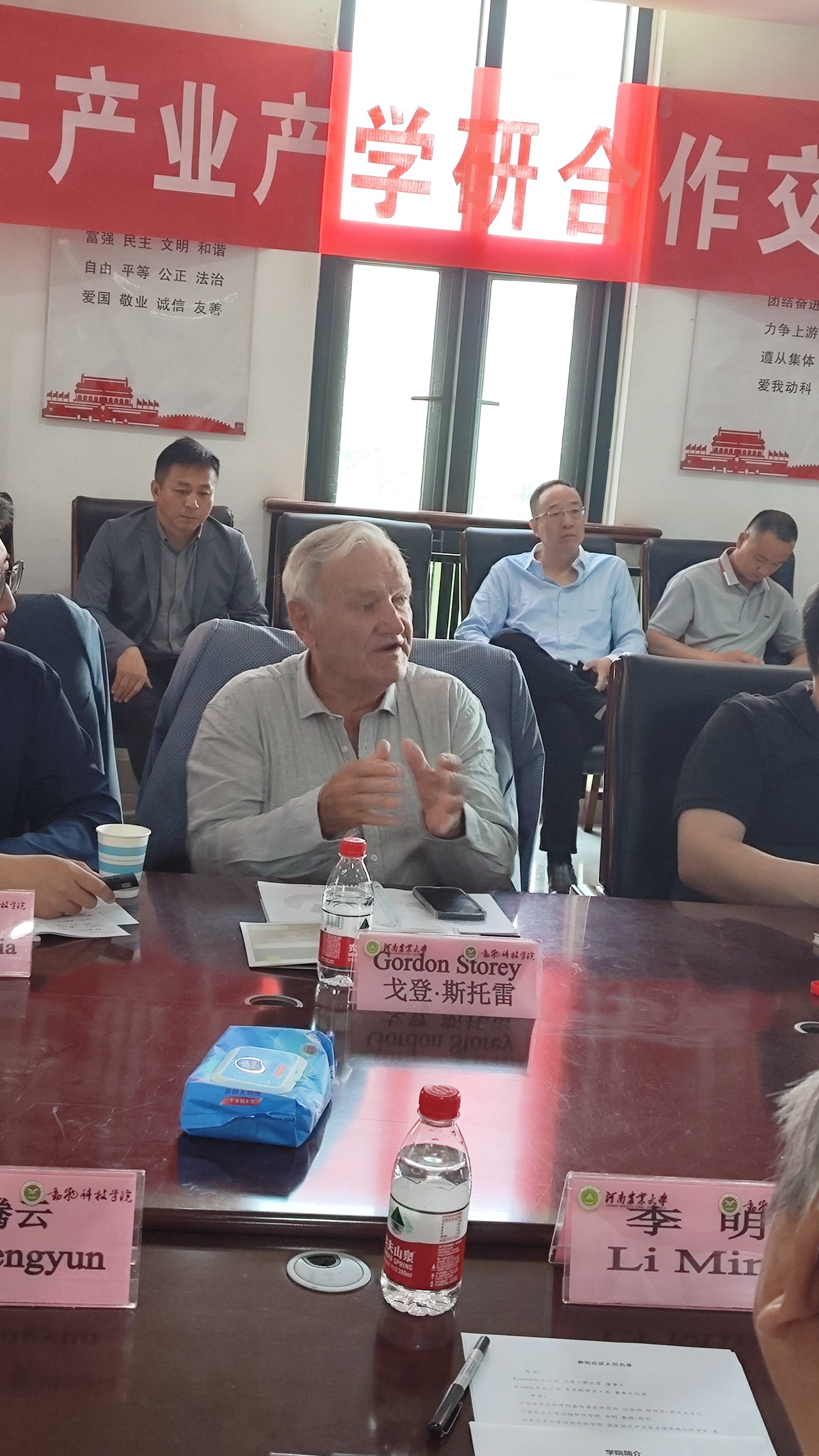 院长李明致欢迎词。他对戈登·斯托雷董事长、闫祥洲研究员及企业领导一行的到来表示热烈欢迎,介绍了学院的发展概况和发展思路。他指出,动麻豆做爱 探索围绕行业发展的应用基础和应用技术开展研究和人才培养的特色发展思路,落实“开放办院、教学立院、科研强院、行业兴院、活力荣院”的发展理念,他表示学院在与企业协同发展、科技创新方面具有很好的合作基础和巨大的发展空间。学院将与基拉芬等企业一起加强合作,将学术研究与产业发展相结合,符合国家对外开放政策,促进肉牛产业产学研协同发展。