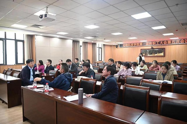 第一届教职工大会第五次会议在第一实验楼南321会议室举行。学院领导班子和全体教职工参加本次会议。会议由院党委副书记、分工会主席郭娟主持。