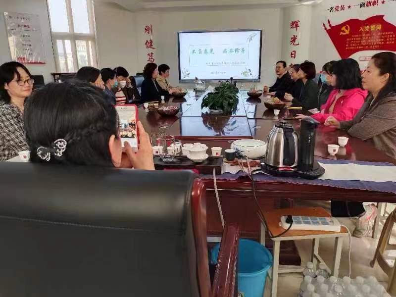 庆祝三八节品茶活动,院党委副书记郭娟、副院长酒梅菊和全体女教师参加了活动。