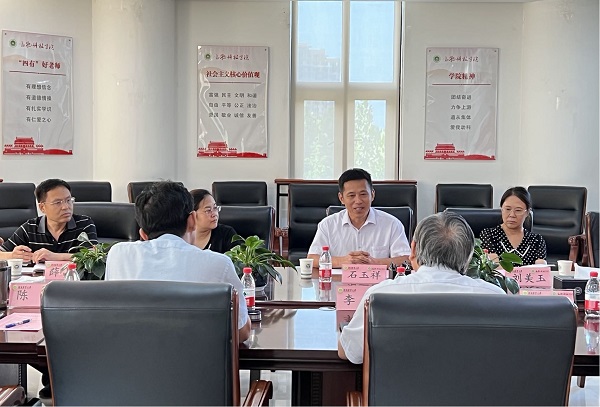 李明对石玉祥院长一行的到来表示热烈欢迎,并围绕学院发展历程、学科传承、师资队伍、科学研究、教育教学与人才培养等6个方面介绍了学院的基本情况。石玉祥院长就河北工程大学生命科学与食品工程学院学科发展的基本情况、各专业招生情况、师资力量等作了详细的介绍,并就蛋鸡(家禽)养殖产技术及养殖产业发展等方面进行深入交流,希望后续在项目申报、研究生培养方法、智慧牧业科学与工程专业建设等方面加强合作、优势互补,实现合作共赢。