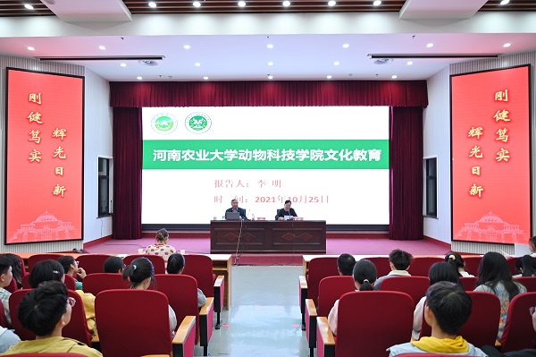 本网讯(通讯员 桑雅惠)为促进新生深入了解学校历史和学院文化,10月25日晚,院长李明教授在教学楼大教室一给2021级新生做文化教育专题讲座。院党委副书记郭娟主持讲座。