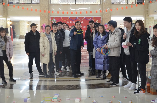 于龙子湖校区第一实验楼一楼大厅举办了“瑞鼠辞旧岁,勤牛迎新春”研究生元旦喜乐会。院党委副书记郭娟、副院长田亚东、部分导师和全体研究生欢聚一堂,喜迎元旦佳节。