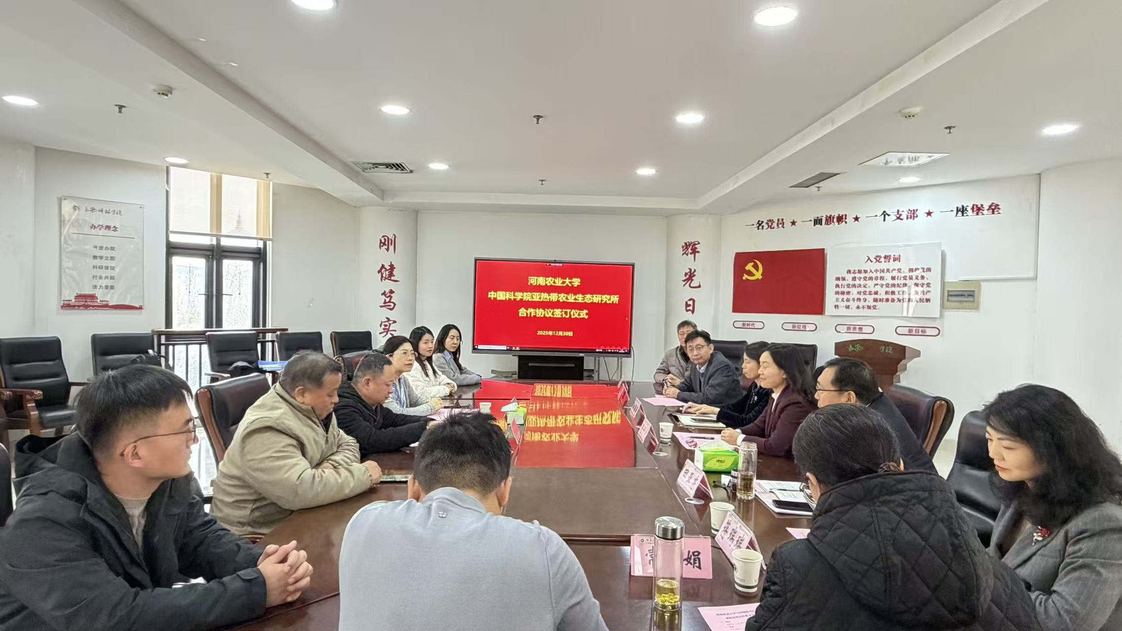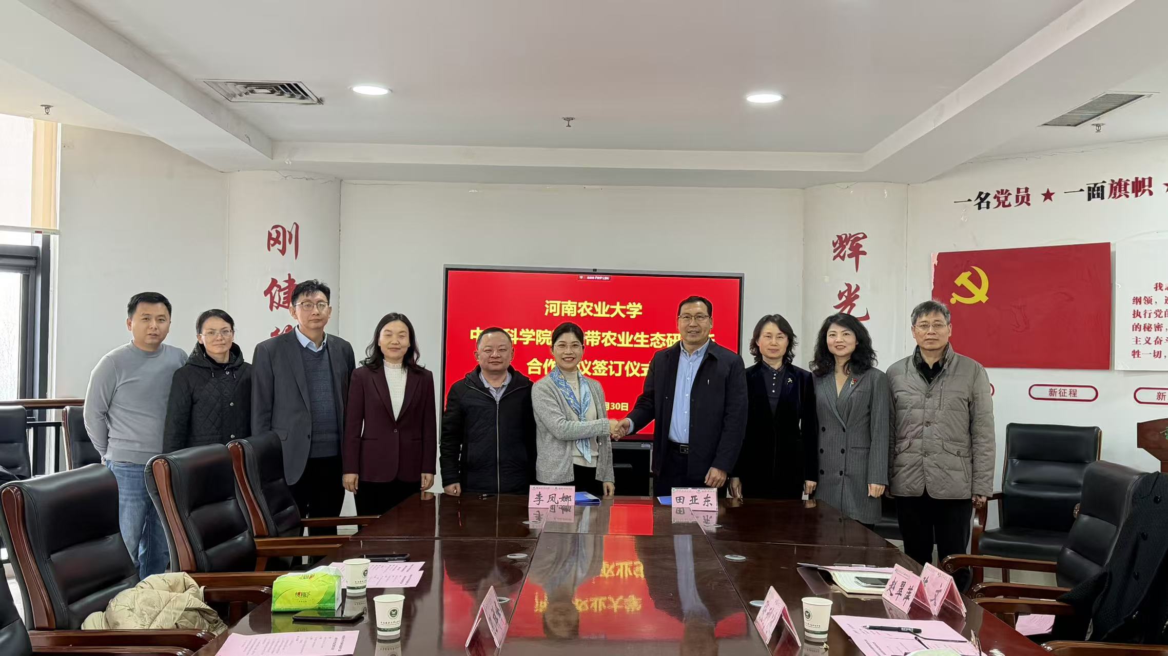 院长田亚东与中国科学院亚热带农业生态研究所畜禽健康养殖与农牧复合生态研究中心主任李凤娜代表双方签署了合作协并合影留念。