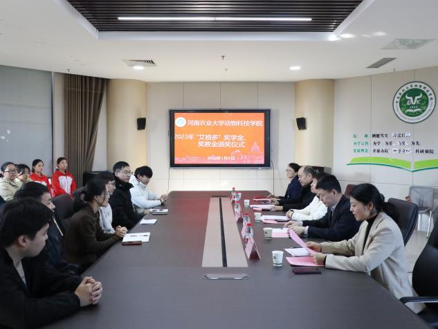 于龙子湖校区第一实验楼南501会议室举行2025年“艾格多”企业奖学金、奖教金颁奖仪式。河南艾格多科技集团人资行政总监孙爱平、校友办副主任闫东、麻豆做爱