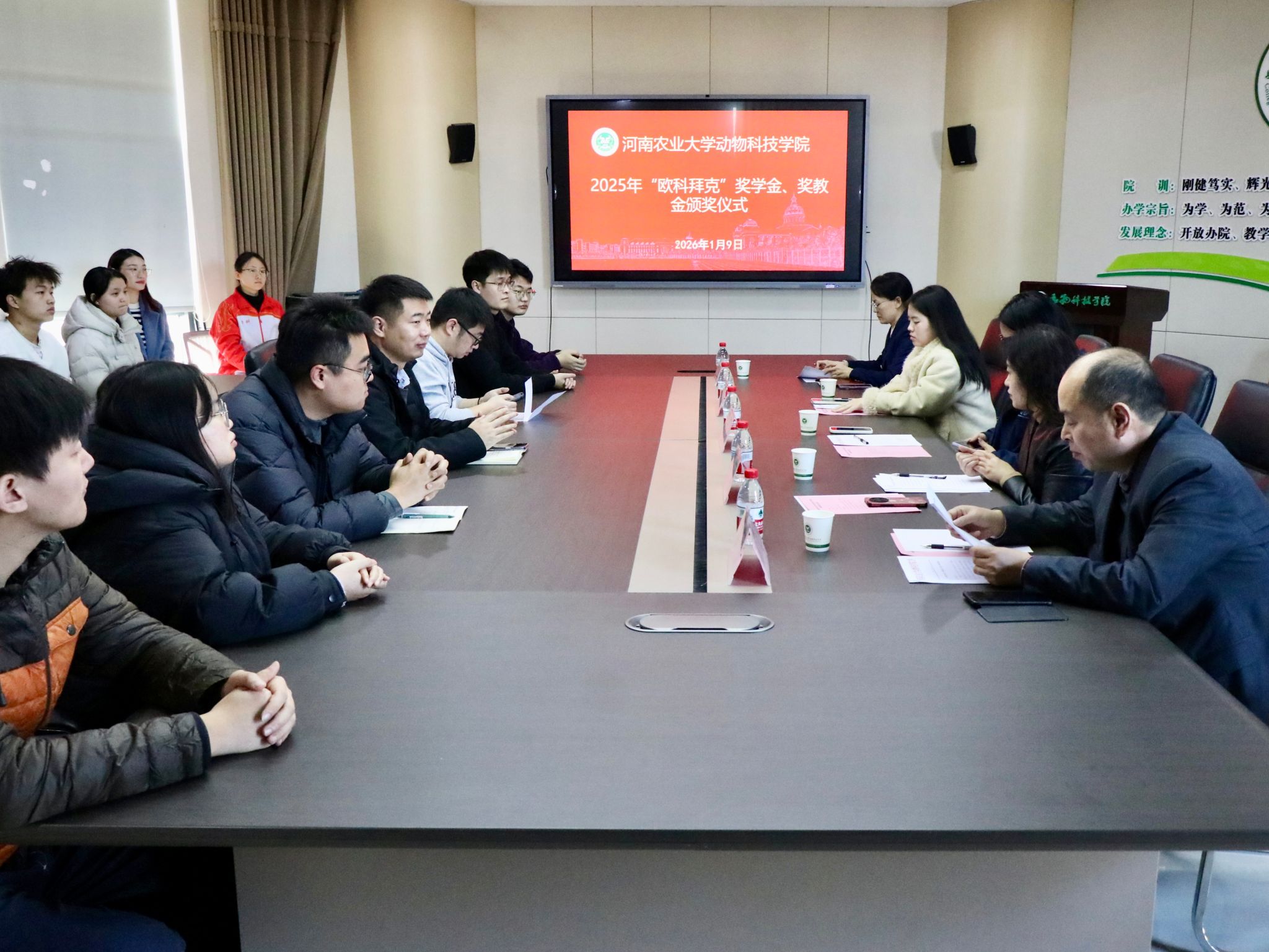 于龙子湖校区第一实验楼南501会议室举办2025年“欧科拜克”企业奖学金、奖教金颁奖仪式。欧科拜克生物技术股份有限公司综合部经理金艳艳、企宣部经理张璇、麻豆做爱