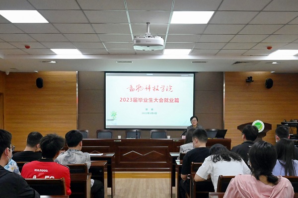 于龙子湖校区的第一实验楼321会议室召开2023届毕业生大会,院党委副书记郭娟、副院长付彤、教学秘书李秀领、辅导员赵姝灿出席本次会议,2023届全体毕业生通过线上线下相结合的方式参加会议,会议由赵姝灿主持。