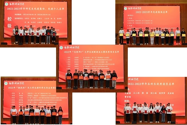 表彰大会环节,付彤宣读了《关于表彰2022-2023学年先进集体和先进个人的决定》,孙宇宣读了《关于表彰2023年“挑战杯”大学生课外学术科技作品竞赛获奖作品的决定》和《关于表彰2023年“互联网+”大学生创新创业大赛获奖作品的决定》,参会领导为获奖集体及个人依次颁奖并合影留念。校级红旗团支部、21级智牧二班王雪婷代表先进集体发言,校级三好学生、20级畜工一班霍姝琪代表先进个人做交流发言,她们感谢学院领导、老师和同学给予的教育指导和无私帮助,表示将在今后的学习和工作中努力做好模范带头作用,争取更大成绩,提升自身综合素质的同时为学院增光添彩。