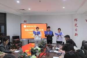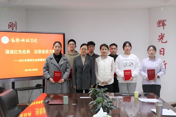 在第一实验楼北330会议室举行“诵读红色经典 汲取奋进力量”主题研究生经典诵读比赛。研究生辅导员张彦华主持,党委副书记郭娟莅临活动并为获奖学生颁奖。