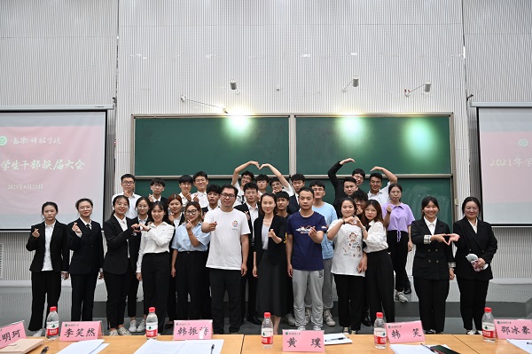 在龙子湖校区大教室七举行2021年学生干部换届大会。团委书记韩笑、团委副书记黄璞、学生会等各部门、班级学生干部代表参加会议,大会由侯路主持。