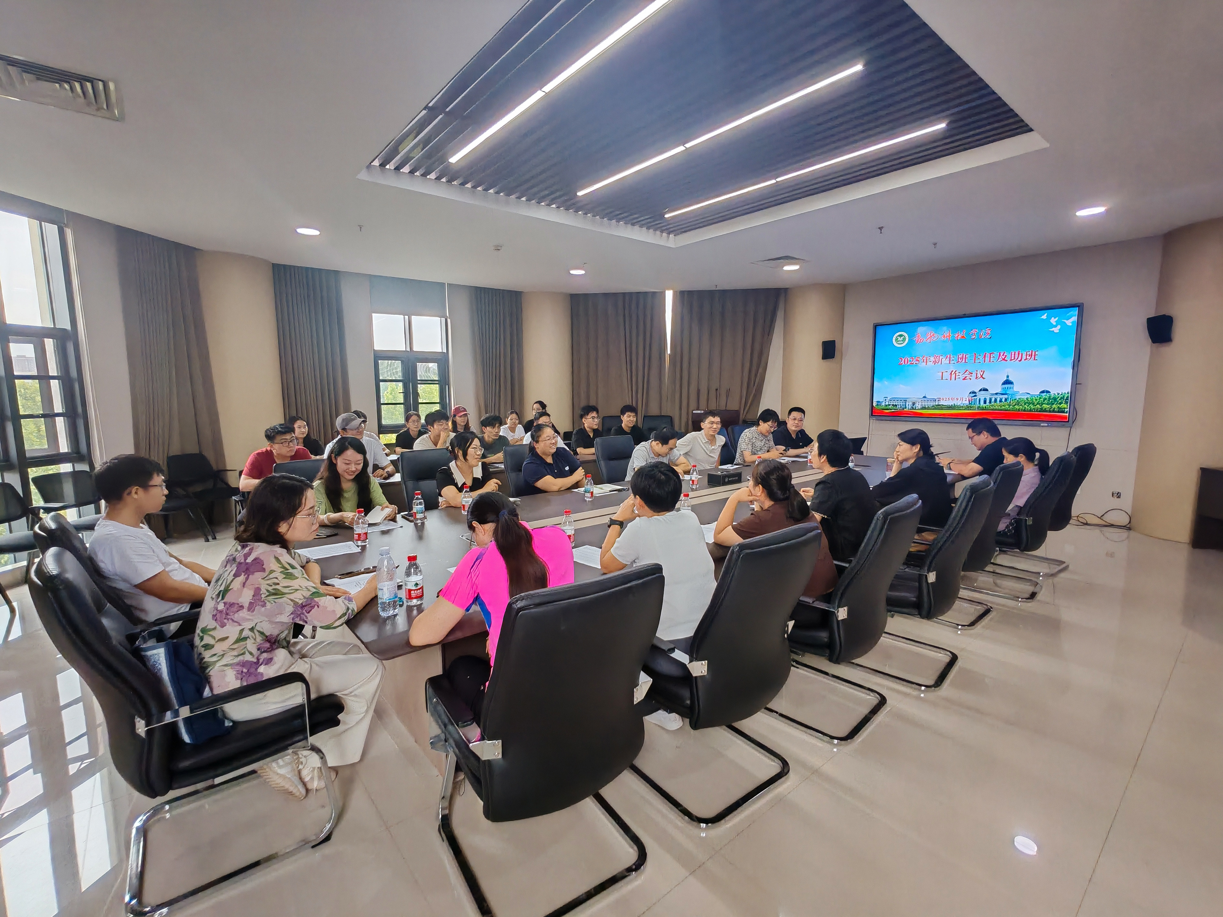 在第一实验室南501会议室召开2025级新生班主任及助班工作会议。院党委副书记郭娟、院组织员兼团委书记韩笑、2025级新生辅导员郭明、班主任及助理班主任共同参会。会议由郭娟主持。