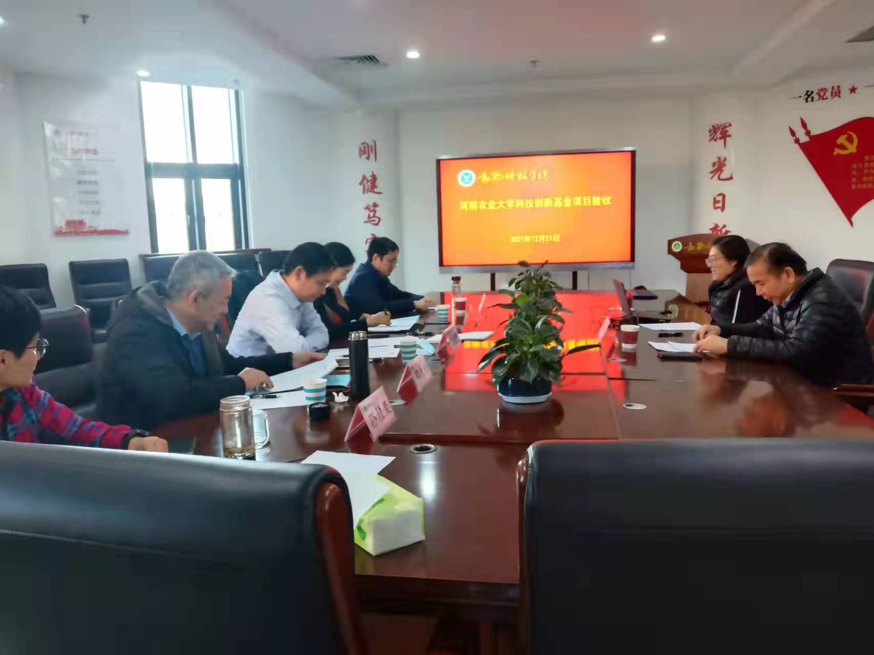 科技创新基金“苜蓿皂苷调节低密度脂蛋白受体(LDLR)表达的分子机理”(项目编号:KJCX2015A06)、“家猪先天性耳畸形因果突变位点HOXA1C.451delinsTC的时序作用网络” (项目编号:KJCX2016A11)、“调控鸡产蛋期肝脏脂肪代谢相关LncRNA的鉴定和功能验证” (项目编号:KJCX2016C01)、“早期植物蛋白营养规划改善黄颡鱼豆粕型肠炎的分子机制研究” (项目编号:KJCX2017A07)、“木质素基因调控苜蓿秋眠的分子机理研究” (项目编号:KJCX2017C02)、“MTTPL基因在鸡肝脏脂质代谢中的生物学功能和作用机理解析” (项目编号:KJCX2018A06)、“日粮添加发酵苜蓿影响猪背最长肌肌内脂肪沉积的机制” (项目编号:KJCX2019A07)进行了集中结题验收。