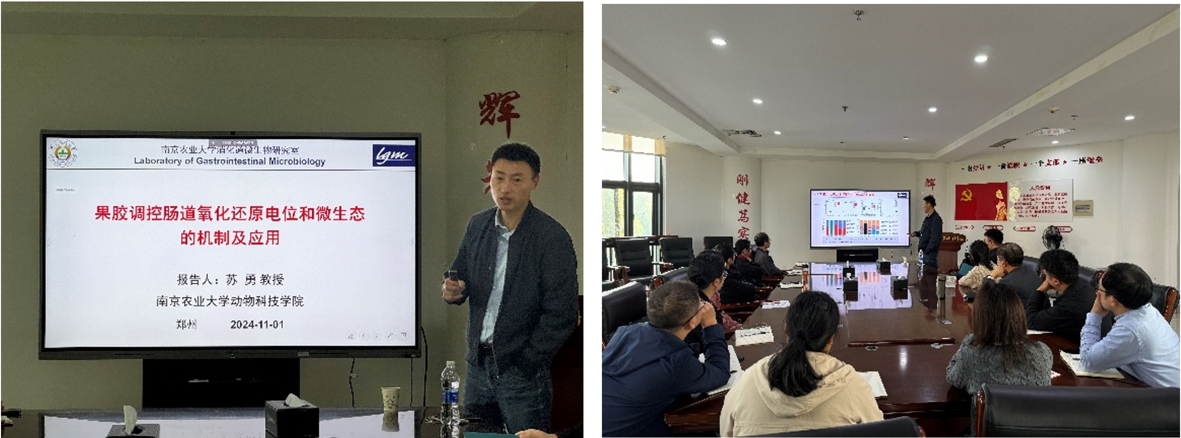 在本次学术交流中,苏勇教授以《果胶调控肠道氧化还原电位和微生态的机制及应用》为题,首先对其团队的研究方向和基本情况进行简要介绍。其次他围绕果胶对猪肠道内环境、微生态结构和功能的影响及其对肠道氧化还原电位和微生态的调控作用等内容进行详细讲解,并分享了他们团队在果胶调控大鼠肠道氧化还原电位的研究成果,进一步表明其团队未来的研究方向及目标,并对相关学术问题进行解答。最后,苏勇教授分享了国家自然科学基金申请书的写作技巧及个人经验,为麻豆做爱
