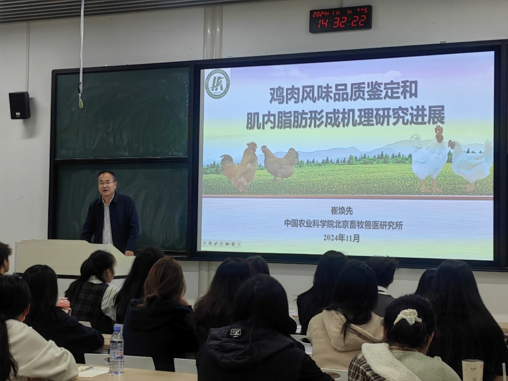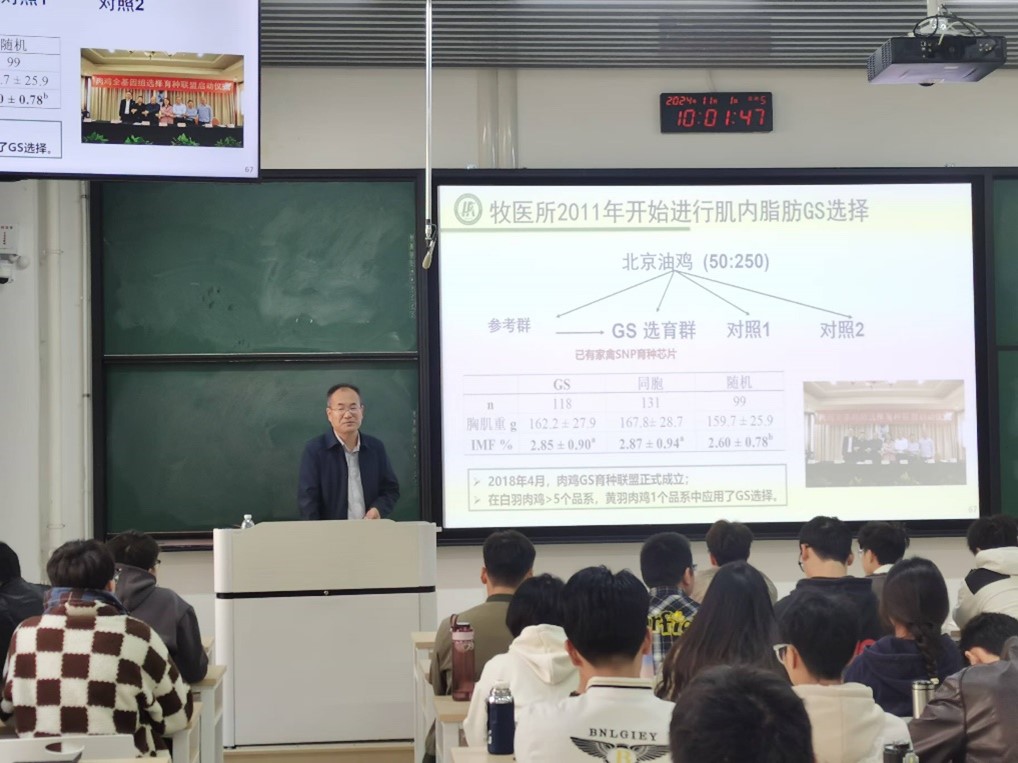 2024级研究生和和中国现代农业联合研究生院食品营养与健康学部畜牧学科研究生上课,讲授《肉鸡遗传育种技术研究进展》,授课内容丰富且有条理,注重互动与反馈,听课学生纷纷表示获益良多。