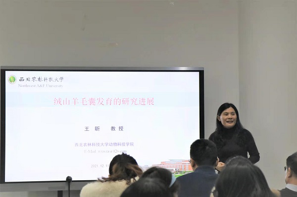 王昕教授以《绒山羊毛囊发育的研究进展》为题,通过简单介绍陕北白绒山羊,深入讲解了绒山羊毛囊发生发育中lncRNA的筛选与鉴定、绒山羊毛囊发生过程单细胞转录图谱的构建、褪黑素影响绒山羊HFSCs增殖与分化、绒山羊毛囊发生发育关键信号通路和基因的筛选和鉴定、Hoxc13对毛发角蛋白的调控及其自身的调控机制、DNA甲基化对绒山羊毛囊分化的调控六项研究结果,为麻豆做爱