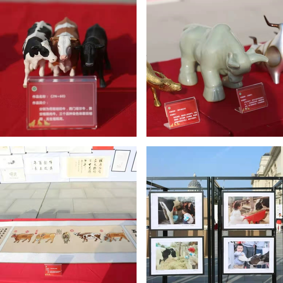 工艺品、牛主题摄影、绘画及书法作品展示现场