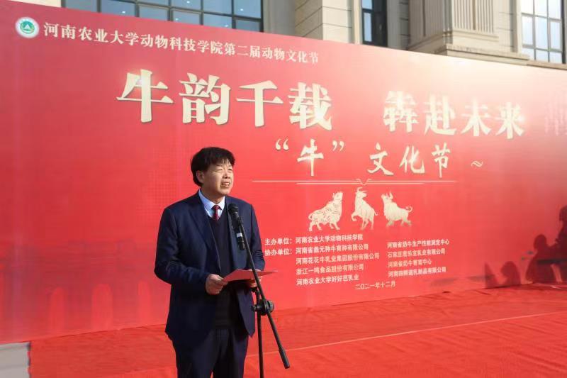 副校长尹新明在讲话中,从中华文化中牛的深厚价值谈起,解析了“三牛精神”的深厚寓意,期望大家通过牛文化节体验耕读文化,走进牛世界,传承牛精神,寄语学院进一步响应和遵循国家战略需要,继续服务于畜牧产业发展和科技进步,为助力我省产业高质量发展,满足国家战略需要和社会需求做出更多贡献。